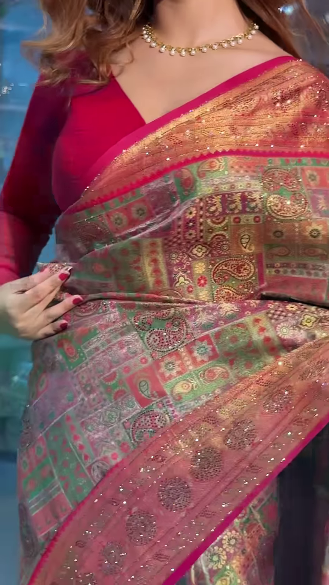 Whether you’re attending a wedding, a family celebration, or a festive gathering, this saree will ensure that you stand out with its refined beauty. Its combination of floral prints, luxurious Pashmina fabric, and intricate zari work make it a perfect choice for those who want to embrace Indian tradition while making a fashion statement.