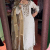 This peach georgette pant style suit is including the wonderful glamorous showing the feel of cute and graceful. The ethnic embroidered and sequins work within the attire adds a sign of elegance statement to your look. Comes with matching bottom and dupatta.