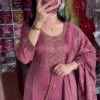 Pink Ethnic Motifs Printed Straight Sequinned Organza Kurta with Trousers & Dupatta