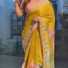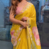 Featuring six yards of elegance and exquisite craftsmanship of this Saree, crafted beautifully for you. It is made in Pure Tussar fabric and has finest Mirror, Zari and Sequin hand embroidery along with Floral prints.